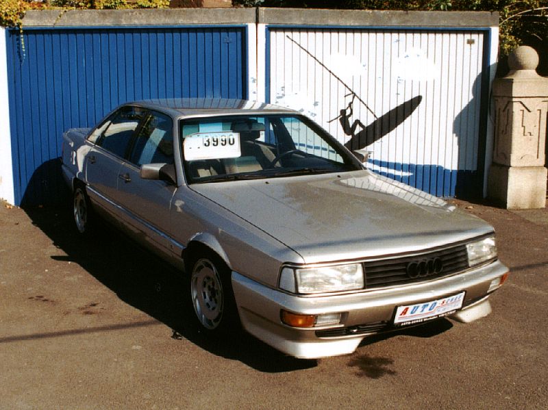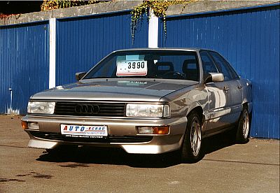 Leider entsprach das Gesehene nicht meinen Wünschen: Für 4000,- einen guten Treser 200 quattro zu bekommen. Erstmal war es kein quattro (Da war der Wunsch Vater des Gedanken), aber auch ansonsten war der Wagen durchwachsen. Einem 1a Innenraum standen kleinere Lackschäden, gerissene Anbauteile, völlig kaputte, sündhaft teure metrische Michelin Reifen, eine gerissene Windschutzscheibe, die wohl nicht über den TÜV kommen wird, ein verzogener Heckspoiler und ein Ölfleck unter der rechten Motorseite, also direkt unter dem Turbolader, entgegen. Die Felgenabdeckungen sind übrigens im Innenraum aufbewahrt.