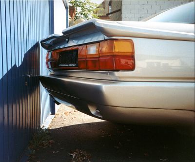 Die Treser-Heckschürze ist angestoßen und der Heckspoiler hat wohl früher schon mal was abbekommen, oder sich aus anderen Gründen verzogen.