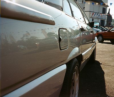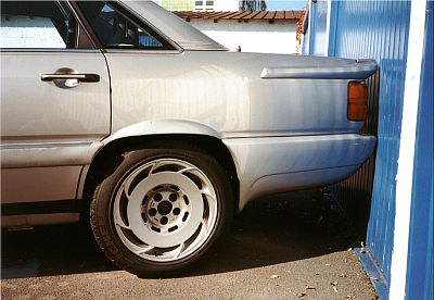 | Die Kotflügelverbreiterungen hat Treser aus dem Blech getrieben, kein Schweißen! Sehen auch nach 13 Jahren noch manierlich aus.