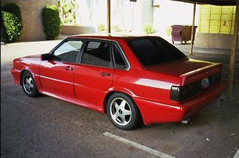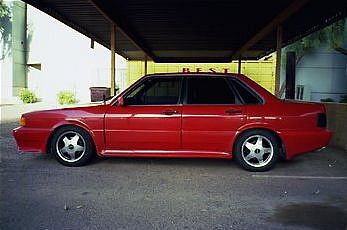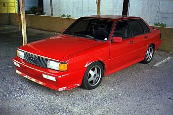 Das Fahrzeug ist ein Audi 80, der in den USA 4000 hieß. Dieser Typ85 hat einige Anbauteile, von denen ich nicht genau weiß, was Treser ist und was nicht, der Heckspoiler sieht wie original Audi aus. AudiDudi sagt, dass es ein 86er Modell ist und einer von 17 Treser 4000 quattros, die offiziell nach USA exportiert wurde. Die Farbe nennt sich "Toronado Red". Die Innenausstattung ist schwarz und außer einem Treser Lederlenkrad original. Am Fahrwerk sind die Treser-Federn und ein steiferer Frontstabilisator zu erwähnen.