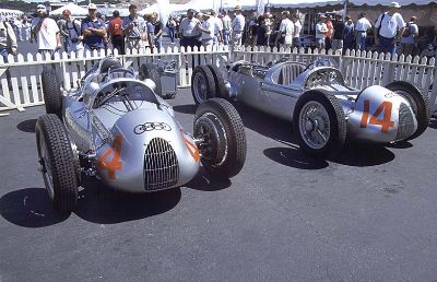Audi soon gained a reputation with its "Alpensieger" (meaning Winner in the Alps). These sportive cars were not only called this way. They truly lived up to their name. Even if Horch started out with little cars, today Horch is best-known for its huge straight eight-cylinders, giving ample power to elegant luxury cars. 1932, the fusion was a deep cut. Within three years, the program was completely restructured, resulting in a better use of resources (yes, even back then!), but still leaving the character of the different companys exist. That way, Horch established its role in the luxury market, while DKW became famous for its motorcycles. The most widely known "product", however, are for sure the "Silberpfeile" (meaning Silver Arrows). Powered by supercharged V16s they fought hard battles with the Mercedes Silberpfeilen.