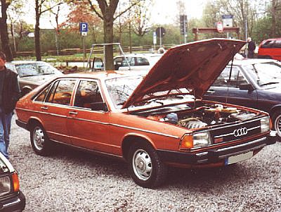 In 8/76 the second generation of the Audi 100 was introduced to the market: the angular Type43 as 2-door and (much more often) 4-door limo. Accompanying the sedan was from 9/77 on the first Avant that could be described as the first life-style wagon. The top of the line Audi 100 was powered by a 5-cylinder that should become famous. Out of 2.2 litre (that must be around 134 cui ) it provided 136PS (100kW). Not bad already, especially if you consider the low weight. But what followed in 9/78 was probably a shock to the established upper-class companies: The Audi 200 was introduced, but not only with the normally aspirated engine 5E, also the 5T was born. 5T standing for 5-cylinder Turbo. 170 PS catapulted the visually light appearing Audi 200 into the premium sector for the first time. The first step to where Audi is today. | ![]() |
