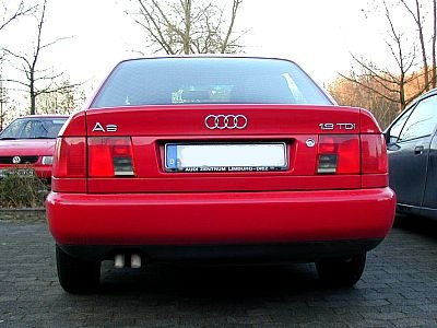 If you see a C4 from behind, you have another possibility to tell if it is an 100 (200) or A6: If there is a black plastic part between the rearlights, it is an Audi 100 (or 200 in USA). If it is only red, it is an S4/S6. If it is body coloured, it is an A6. | |