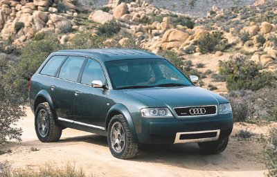The model line-up of the C5, consisting of limo and Avant was broadened from model year 2001 on by the Audi Allroad quattro. It will continue the tradition of concept cars seeing production. It is an SAV, a Sport Activity Vehicle, a type of car not common in Europe. Audi's interpretation of this theme has of course quattro, adjustable ride height and nice applications made of stainless steel. The production model however is a bit more "normal": no chromed rear-view mirrors and the applications are made of aluminium. |