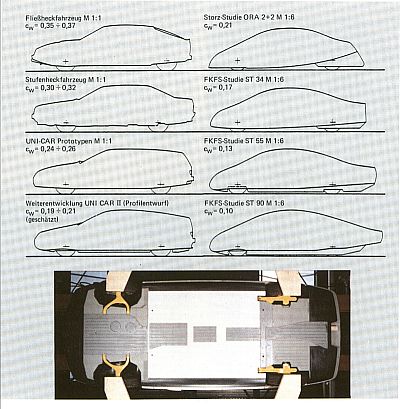 In the lower half of the picture you can see the fully sealed bottom of Unicar. Normal cars create more than 50% of their drag beneath the car!