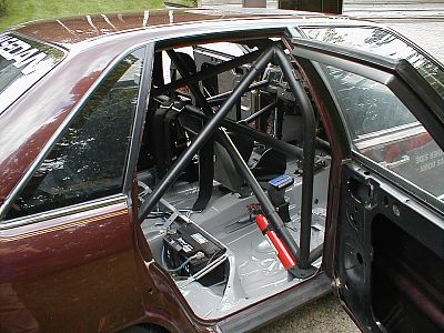![]() | One of the most important parts of making this limo a racer was the construction of a roll-bar. Larry did it all by himself and came up with a very strong but light piece of art. The car is now much stiffer and handles very crisply. Note the empty door! |