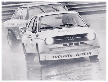 This is an Audi 50 prepared by nothelle at the German Touringcar Championship in Zolder (Belgium) in 1975. Cited from nothelle.com: "This race was the world premiere of a Audi 50 racecar: "He came, saw and won" " |
