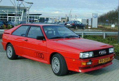 An Audi quattro in the US version. Soon the name Urquattro should be common, even in English-speaking countries. Nowadays, the US-Americans call the C4 S4 UrS4, to make a distinction from the S4 with A4 base. In March 1980 the quattro was introduced for the first time at the Geneva Auto Show. It saw production together with the normal Coupé (introduced in September at the Frankfurt Auto Show) in November 1980. Its 10V 5-cylinder Turbo made 200hp available. The car was based on the Audi 80 but had a lot of unique parts and specialities. The Urquattro was not only successful in Rallye racing, but also as a normal production car. This is pretty astonishing, as at first only a limited production run was planned and the car had pretty high price tag. |